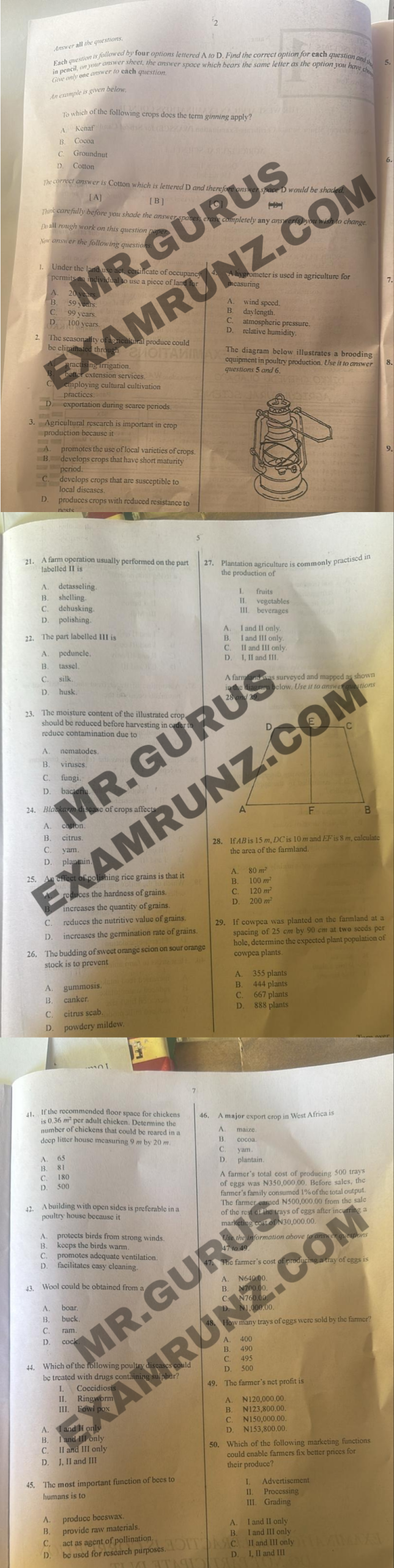 - CLICK TO VIEW 2025 WAEC AGRIC OBJECTIVES QUESTIONS PAPER
