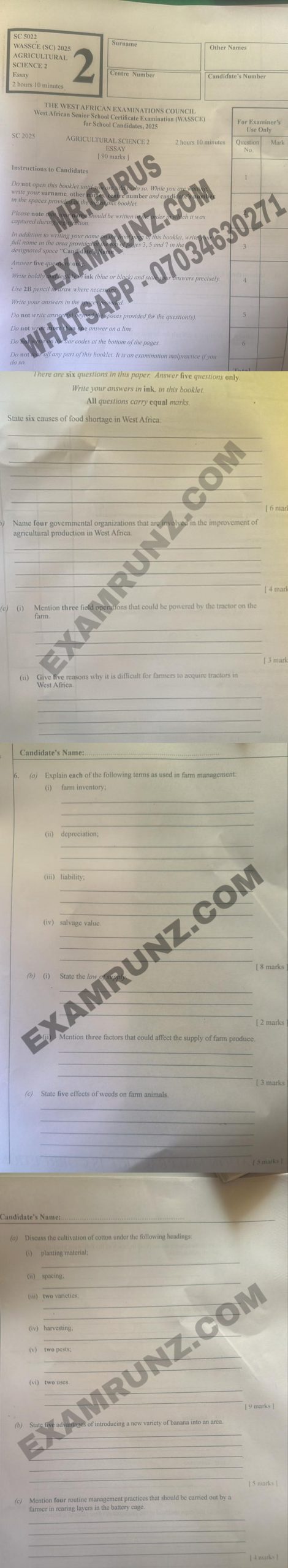 - CLICK TO VIEW 2025 WAEC AGRIC THEORY QUESTIONS PAPER
