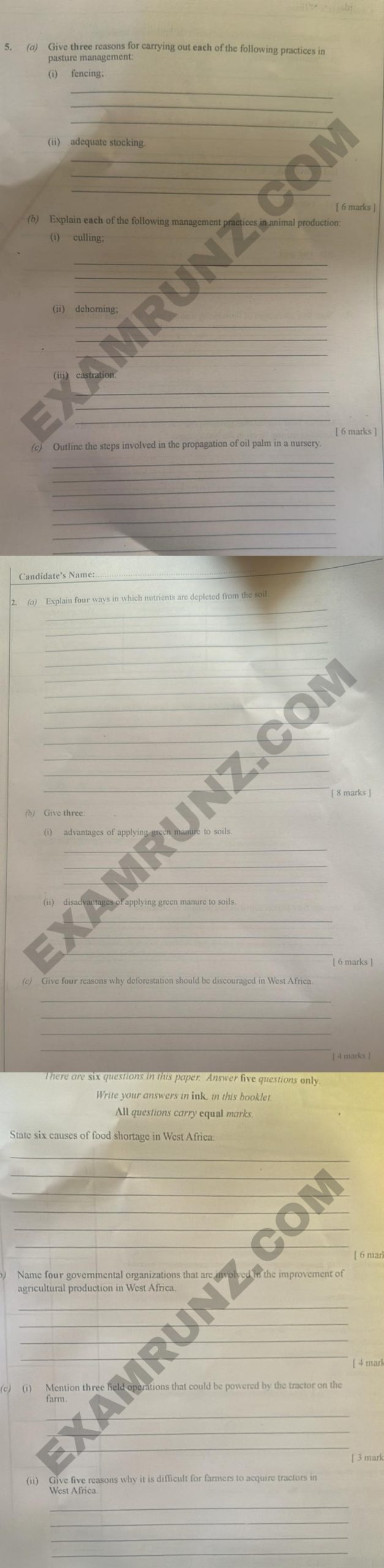 WAEC AGRICULTURAL SCIENCE THEORY ANSWERS