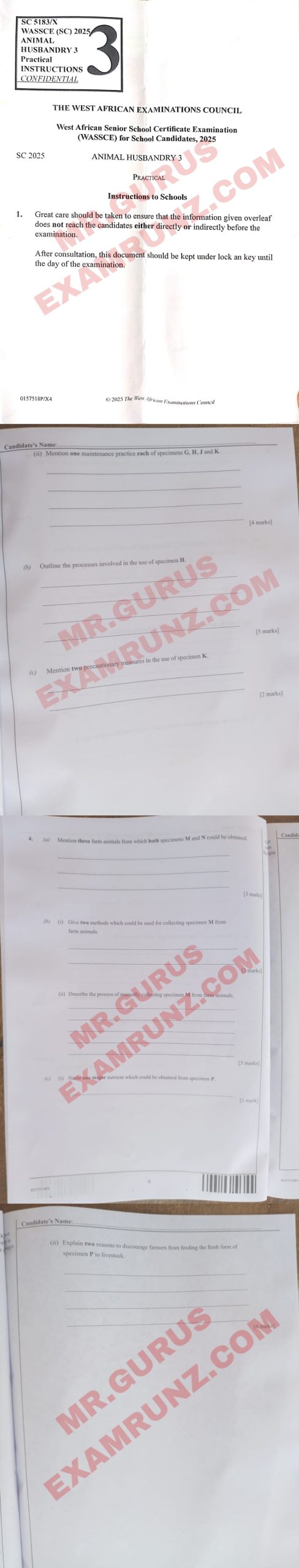 - Waec 2025 Animal Husbandry Practical Questions Paper Click Here