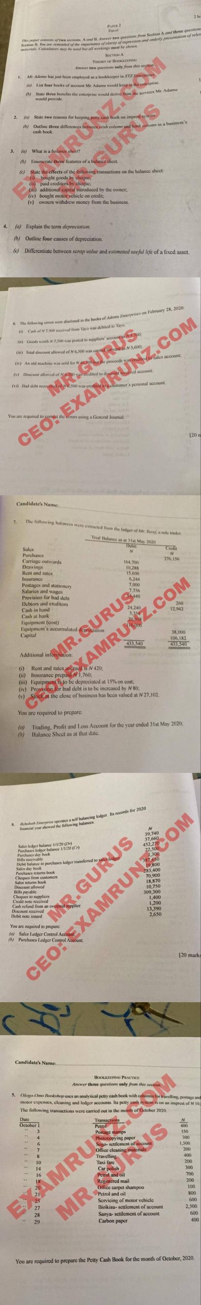 1. WAEC 2025 BOOK KEEPING QUESTION PAPER CLICK HERE