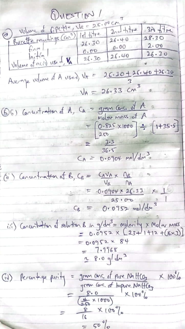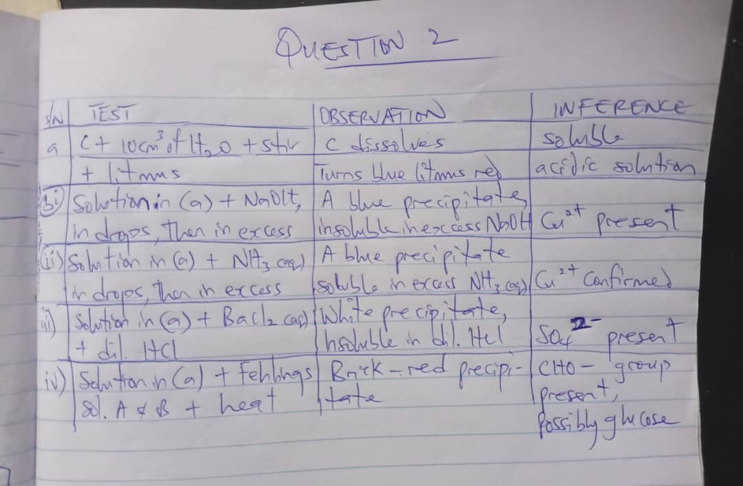 WAEC CHEMISTRY PRACTICAL ANSWERS
