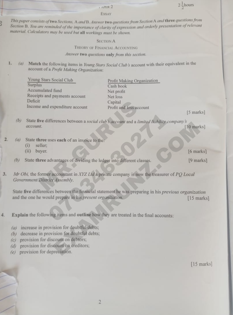- WAEC ACCOUNTING THEORY QUESTION PAPER NO. 1-4