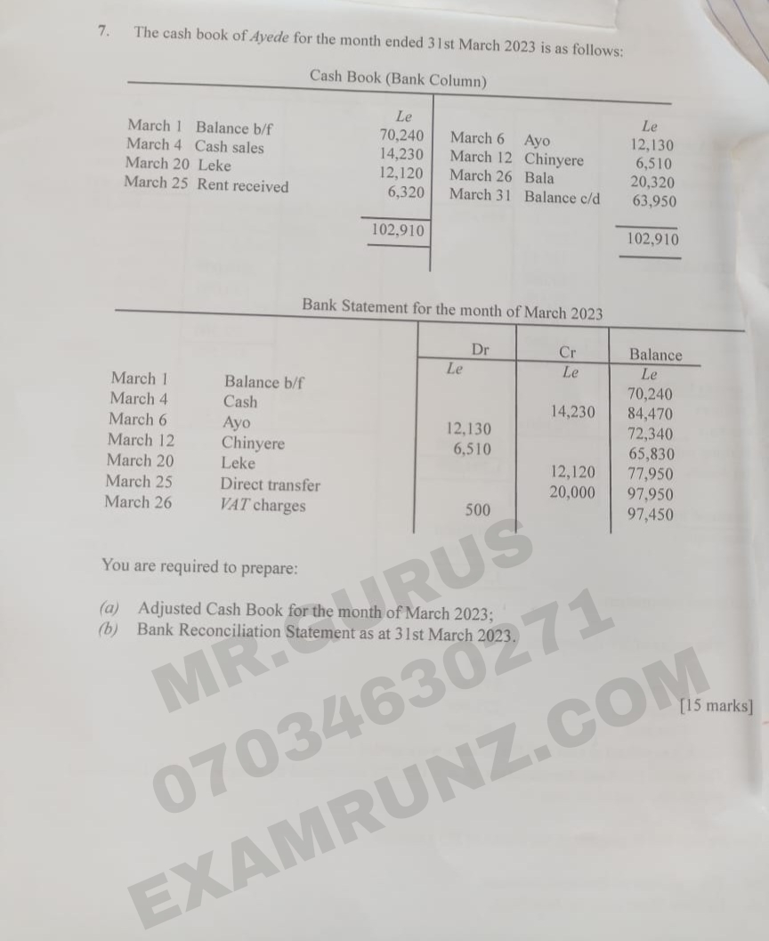 - WAEC ACCOUNTING THEORY QUESTION PAPER NO.7