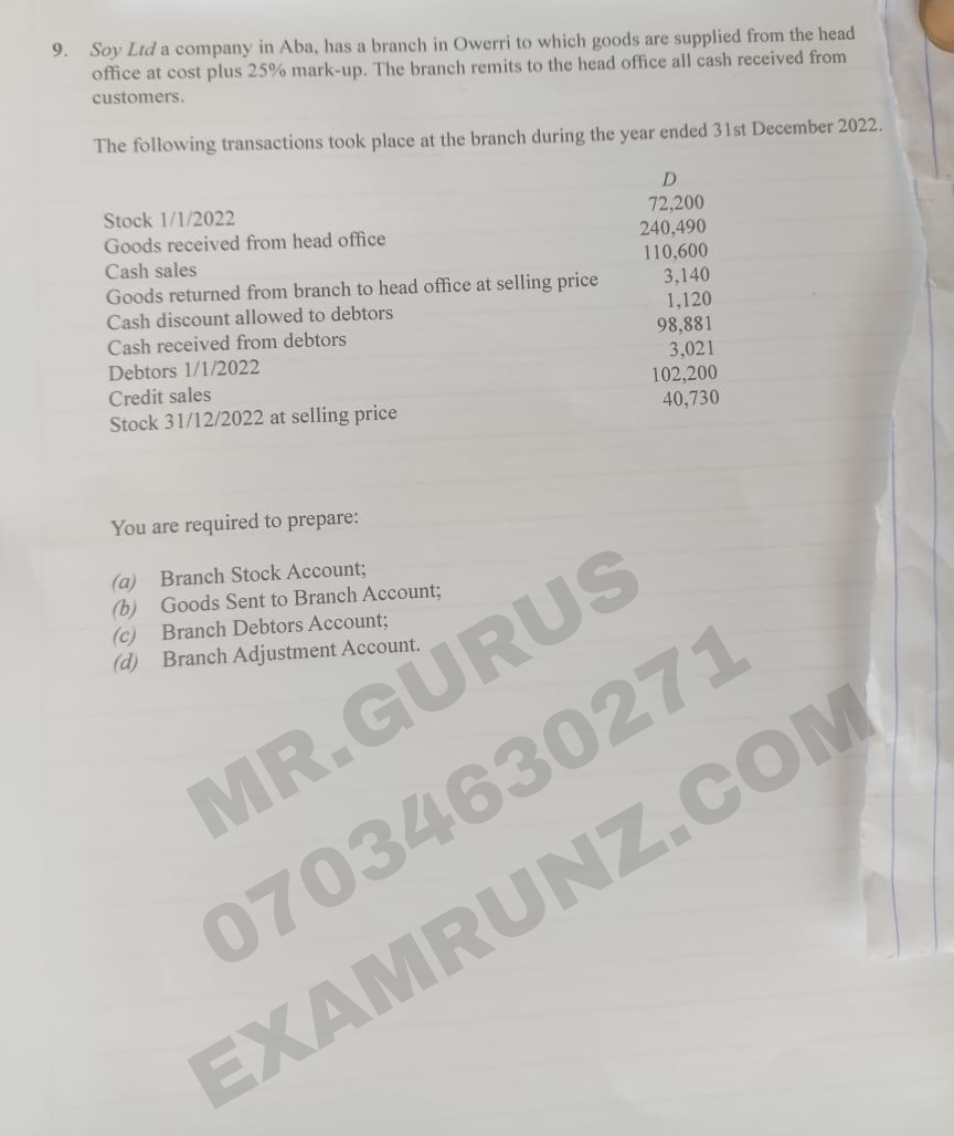 - WAEC ACCOUNTING THEORY QUESTION PAPER NO.9