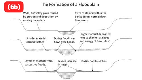(iii) Flood plains experience periodic flooding when the river overflows its banks.