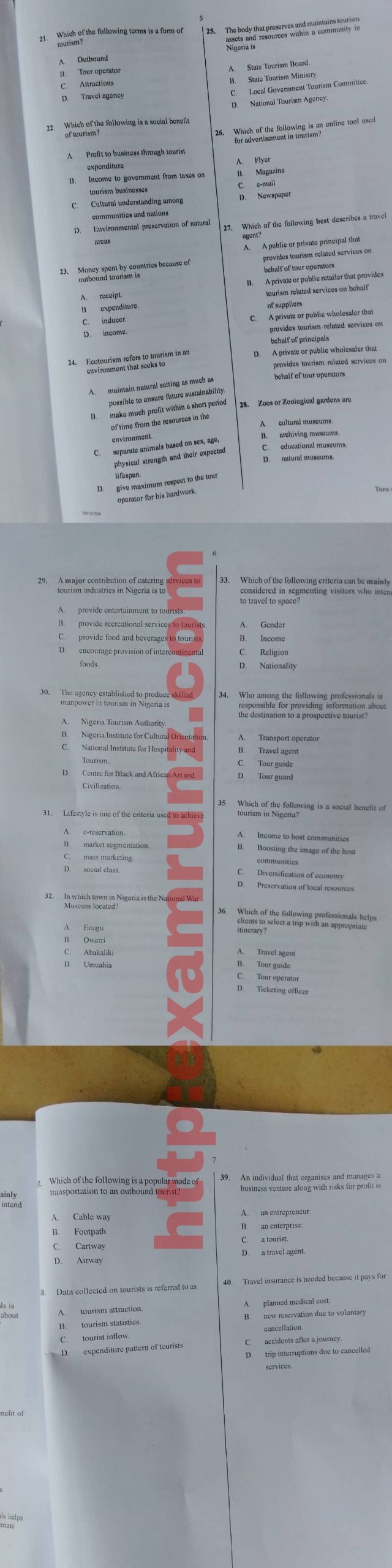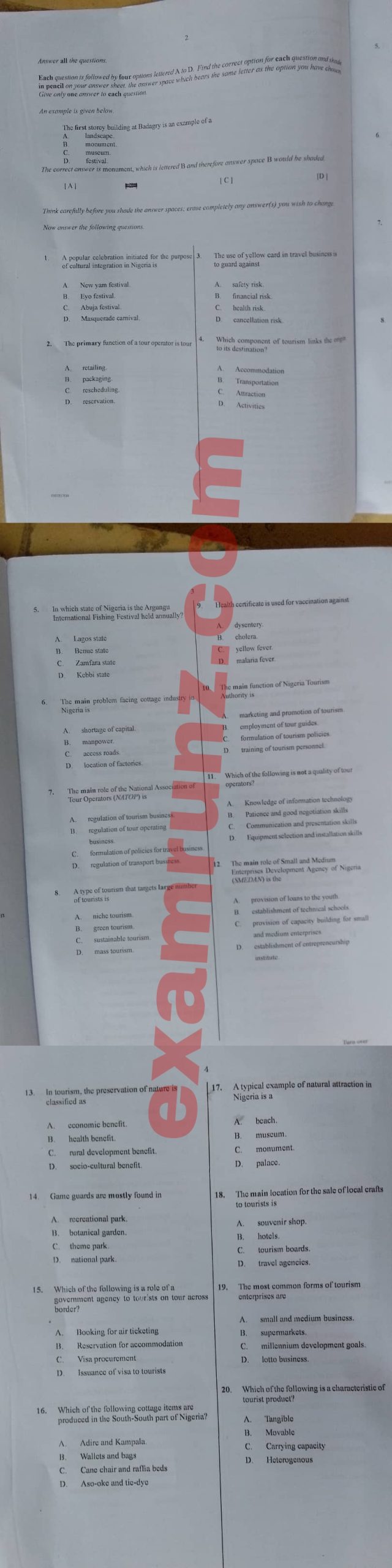 Welcome to “EXAMRUNZ.COM” For Waec 2025 Tourism Questions & Answers