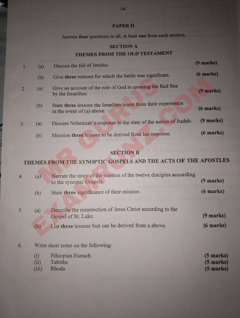 Authentic 2025 Neco Gce Crs Answer
