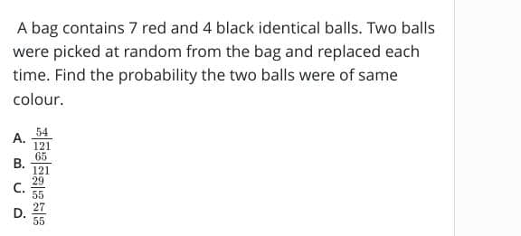 The Venn diagram above shows the number of students offering physics and chemistry in a class of 65. What is the probability that a student selected from the class offers physics and chemistry if every students offers at least one subject?